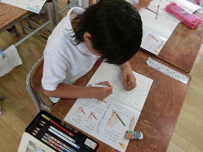 このクラスでは、今日のこの時間は「しょしゃ」です。いわゆる「書き方」の時間です。