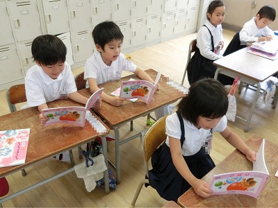 早く終わった子から、音読の本を取り出し、お隣の席の子と一緒に声を合わせて読んでいました。