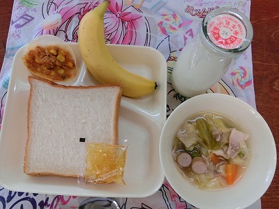 バナナは一人1本、甘くておいしくいただきました。少し余分に入っていたバナナもじゃんけんでの争奪戦で残食ゼロでした。