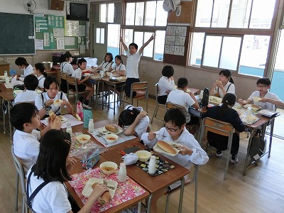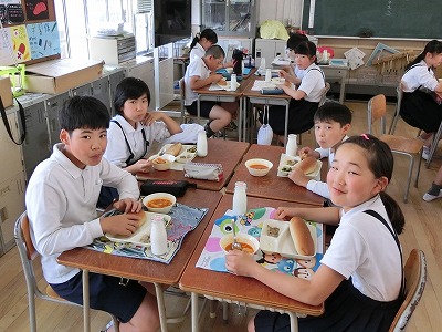 鶏肉のバジル焼きは、ワイン、塩、こしょう、バジル、オリーブ油で下味をつけた鶏肉(もも肉)を焼いています。子どもたちもとってもおいしそうに食べていました。ただ、一人分の分量が少なかったのが残念です。みんなたくさん食べたがっていました。