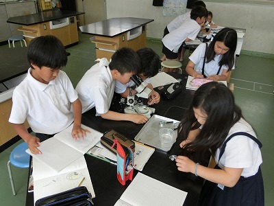 5年生 メダカの受精卵の観察 (5月24日)