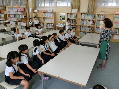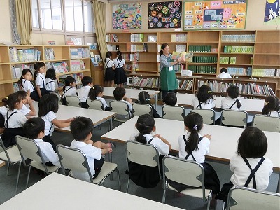 地域の絵本読み聞かせボランティアの「がらがらどん」さんが2時間目と3時間目の間の15分休みに図書室で絵本や紙芝居の読み聞かせを行ってくれています。(子どもたちが教室に戻った後は、本の整理や掲示物の作成などもしていただいています)