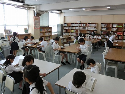 低学年の児童を中心に、今日もたくさんの子どもたちが図書室に集まってくれました。