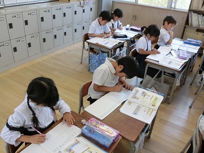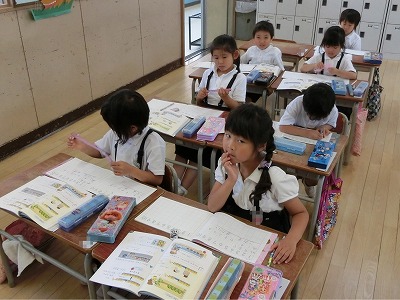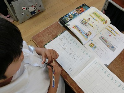 このクラスでは、「あわせて いくつ」、今日は「ふえると いくつ」という内容で学習していました。