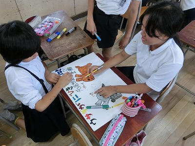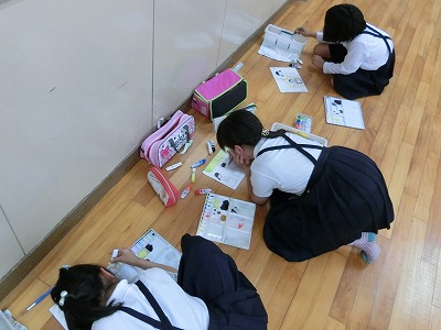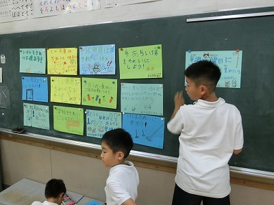 上:美化委員会では、清掃活動や空き缶回収などのポスター作りをしていました。