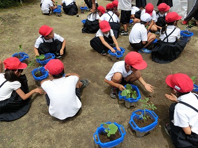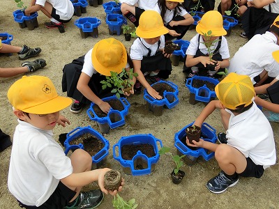 今後の成長がとても楽しみですが、子どもたちは自分の苗を本当に大切に扱っていました。苗は「ミニトマト」「ピーマン」「きゅうり」「ししとう」「なす」「オクラ」「枝豆」から、自分で選んだそうです。