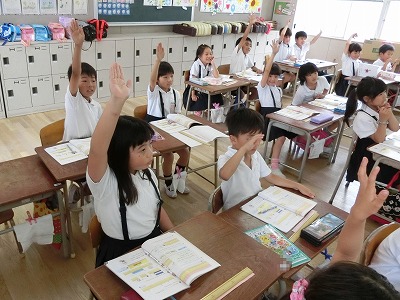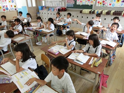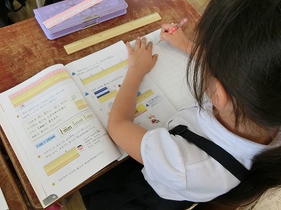 以前にcm(センチメートル)の学習をしていることを紹介しましたが、今日、このクラスでは、竹のものさしを使って、1cmを同じ長さ、10に分けた1つ分を1mm(ミリメートル)ということを学習していました。