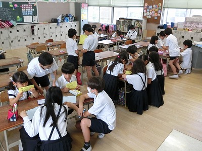 同じたて割り班内の1年生と6年生、2年生と4年生、3年生と5年生がそれぞれAとBのグループでお店を巡っていきます。
