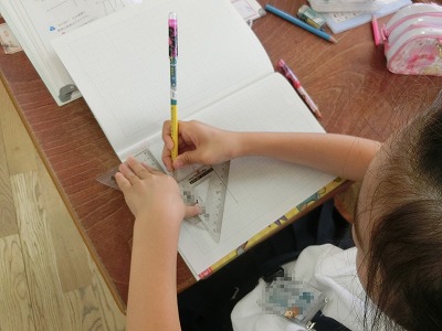 この後、2つの三角定規を使って、垂直な線を書く練習をしていました。