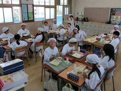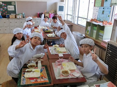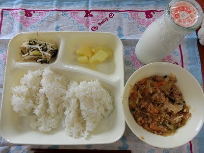 マーボー春雨は、ひき肉に、玉ねぎ、にんじん、たけのこ、しいたけ、にら、しょうがが入っており、豆板醤で少しピリ辛に仕上げていました。ご飯のおかずにぴったりで、中には、お椀の中にご飯を入れて、マーボー丼にしている子も多かったです。