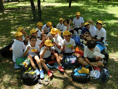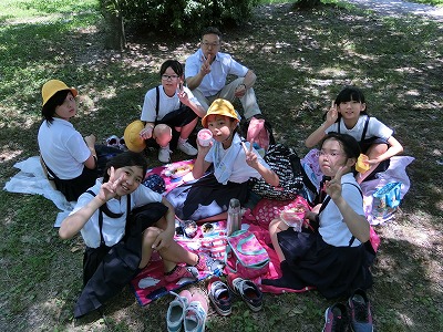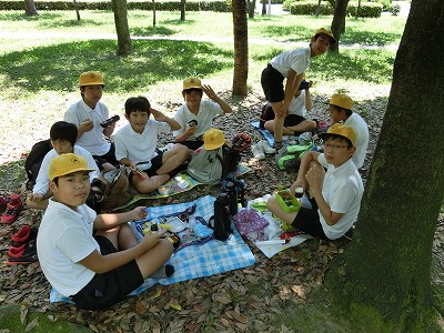 大阪城公園内に入ってすぐにお弁当タイムです。
