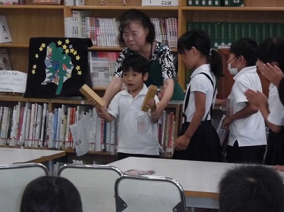 今日は紙芝居「たなばた ものがたり」を聴かせていただきました。