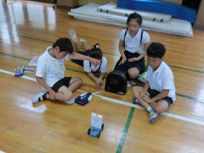 それを実際に実験するための車のキット教材を前の授業で組み立てていました。今回の風の実験で使う「帆」の部分は自由にデザインです。
