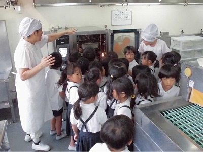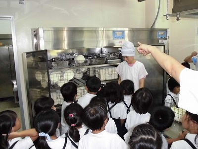 食器を洗う水槽や機械、揚げ物をするフライヤー、お魚やお肉、グラタンなどを焼くための焼き物機、そして洗った食器を消毒する食器消毒保管機を見せてもらいまいました。