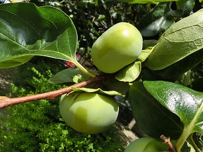 学習園横の甘柿です。5cm位の大きさまで順調に育っています。