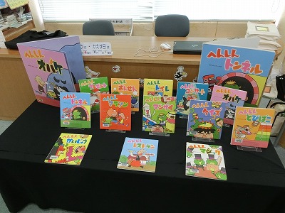 昨年度の大阪市の取り組み『One Book One Osaka』(自分のお気に入りの一冊の絵本を選び、お気に入りの理由を文や絵で表現して投票)では「へんしんトンネル」に決定しました。今日はたくさんの「へんしん」シリーズを持ってきていただきました。