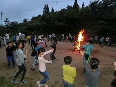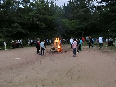 まだ、明るさは残っていますが、みんなが楽しみにしていたキャンプファイヤーのスタートです。