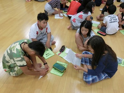 班長さんは、明日の活動について班のメンバーに伝達です。