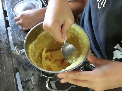 約20分ほど頑張れば、汁食缶の中には冷たいシャーベットが出来上がっています。