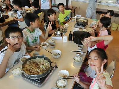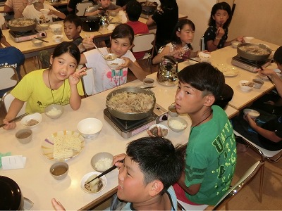 どのテーブルも笑顔いっぱいで、楽しそうなおしゃべりをしながら食べています。