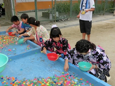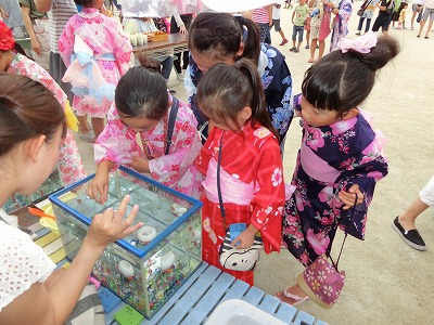 7時ごろより始まった盆踊りでは、子どもたちも輪に入り、踊りを教えてもらいながら楽しそうに頑張っていました。