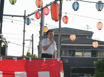 5時半には金谷区長さんも駆けつけてくれ、やぐらの上からご挨拶をいただきました。