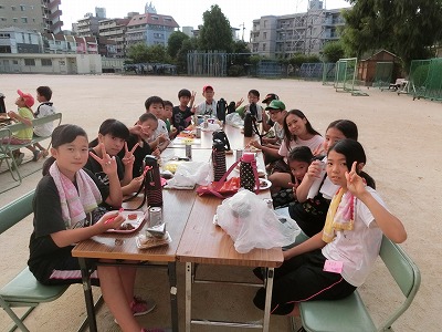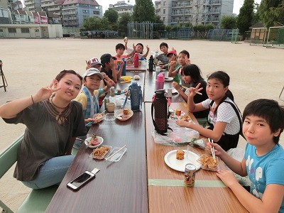 ダブルダッチで教えていただいたお兄さんやお姉さんも一緒に食べてくれました。