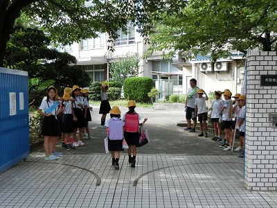 正門には、運営委員の子どもたちの他にも、曜日ごとに学年を決めての有志の子どもたちが、お手製のタスキを肩からかけて、立ってくれています。