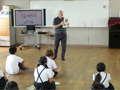 後半は、教科書「Hi Friends」を使って、ペアでアクティビティーな活動をしました。