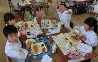 パンにはさんでホットドッグにして食べる子、大切に残しておいて最後に一気に食べる子、それぞれが自分なりに楽しんで食べていました。