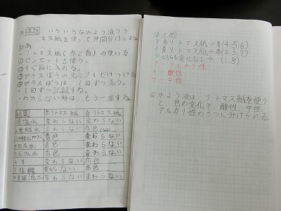 どの班も、実験は成功し、ノートもとてもきれいに書けていました。