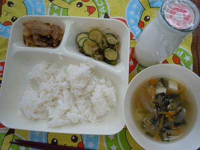 きゅうりともやしの和え物は、塩ゆでしたきゅうりともやしに、砂糖、しょう油を一度煮立たせたものがかけられていました。