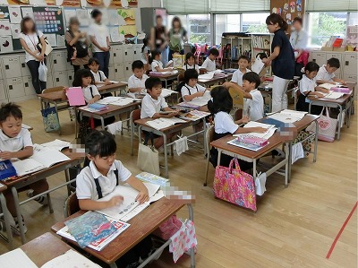 雨が降ったりやんだりとぐずつく中、たくさんの保護者の方々に、お昼休みの早い段階からご来校いただき、授業が始まるころには、廊下はとても混雑していました。