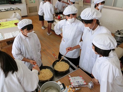 今日は1組さんが、いただいたラーメンの調理と試食の日でした。(2組と3組はすでに実施済みです)