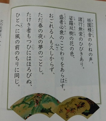 子どもたちは休み時間も平家物語の冒頭部分を、古典仮名づかいに苦労しながら、大きな声で音読をしていました。