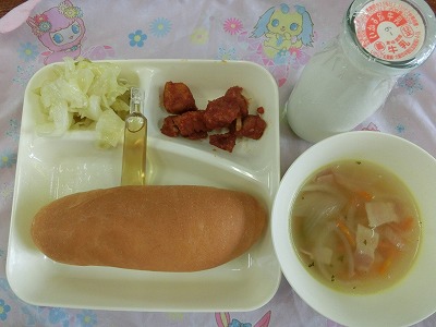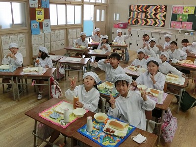 まぐろのオーロラ煮は、年2回の貴重なメニューです。しょう油で下味をつけたまぐろにでんぷんをまぶし、油で揚げ、その後、ケチャップ・砂糖・赤みそを合わせて煮たものをからめた料理です。子どもたちには人気で、お替りですぐに食缶は空っぽです。
