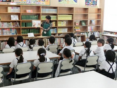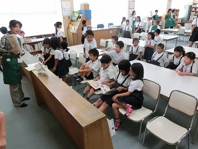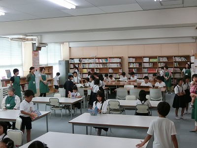 まずは1年生から図書室にどんどんと集まってきて、2時間目に体育を終えた2年生もたくさん来てくれました。