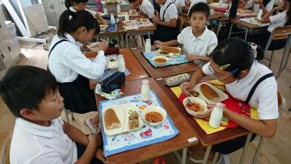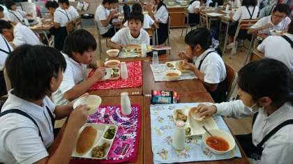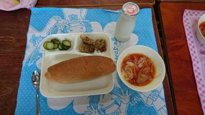 今日の給食は、ミラノ・大阪姉妹都市提携記念献立でした。