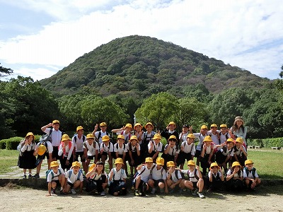 美しい甲山をバックに記念写真です。