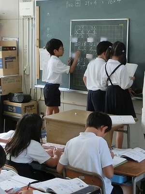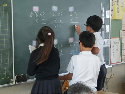 子どもたちはとっても自信があるようで、前に出て黒板に答えを書きたがっていました。