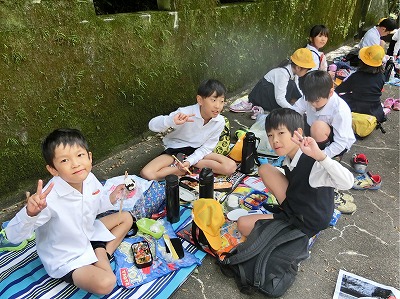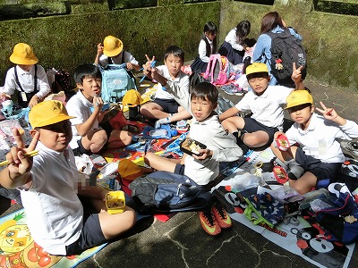 たっぷり山道を歩いた子ども達のおなかはペコペコでした。