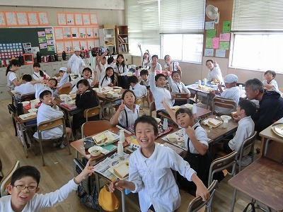 大学いもは、基本は一人1切れだったのですが、どのクラスも余分に給食調理員さんが配缶時に入れていてくれたようで、お替りの2個目をもらって、うれしそうに食べていました。