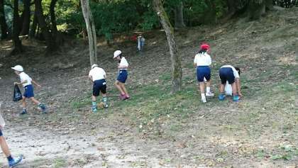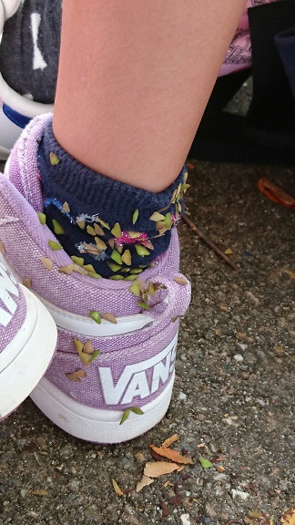 どんぐり拾いに夢中になって、草むらに入ると「くっつきむし」がたくさん靴下や体操服にくっついて、とるのに苦労していました。