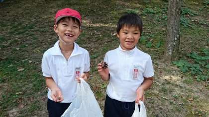 お弁当のあとは、どんぐりや松ぼっくりを拾いました。