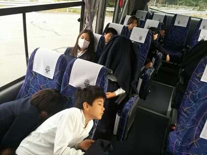 バスの中では、爆睡の集団(2号車)も見つけました。