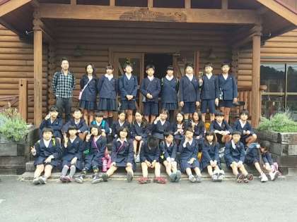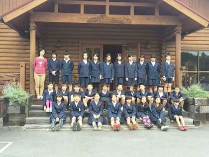 修学旅行 モクモク手づくりファームで学級写真