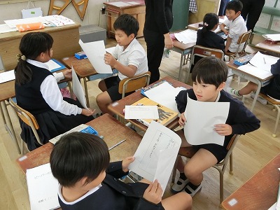 子どもたちは多くの先生方の来室に緊張していましたが、ワークシートへの記入、手をあげての発表、ペア学習でお互いのクイズの出し合いなど、授業に積極的に参加し、がんばっていました。