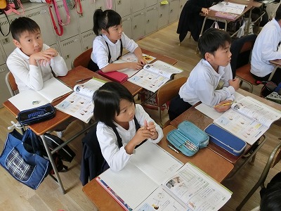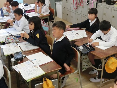 先日、「かげのでき方と太陽の光」という単元を学習していると紹介しましたが、このクラスでは今日は「温度計」での測定の仕方を学んでいました。