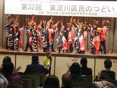 また、舞台発表では生涯学習の「よさこい」のメンバーが出場し、本校の児童も元気いっぱいに踊っていました。