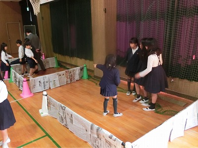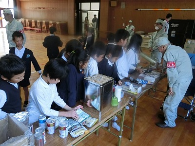 3・4年生は、2時間目は区役所の方から、人を助ける場合、ケガの手当てをするとき、火事の時に「いざというときに役立つもの」防災クイズをしました。また、避難所に持っていく荷物についても説明がありました。3時間目は、熊本地震における避難所生活のお話を聞き、実際に豊新小学校にある避難所備蓄物品を見たり、避難所のスペースの体験もしました。